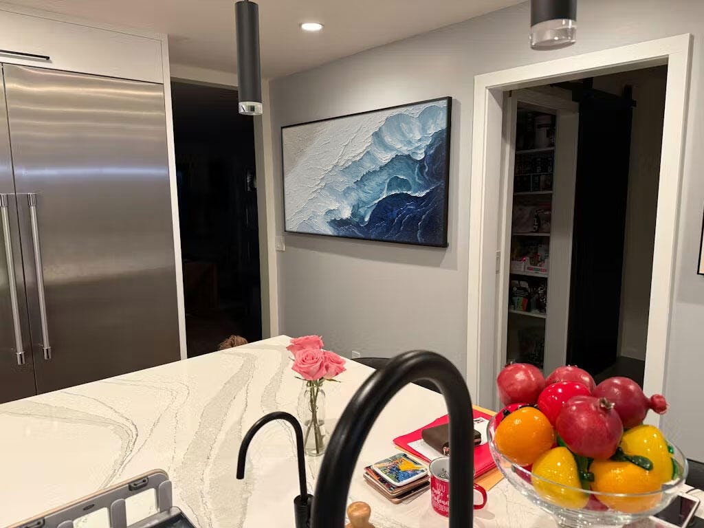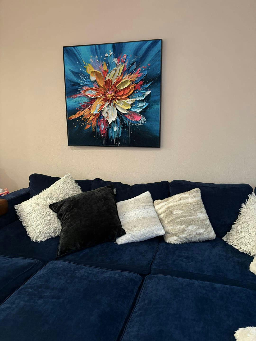 Cute painting I got for a rental. I was a little nervous about it but I think adds a lot to the space. It was easy to install and felt like good quality for what I got. It didn’t feel to heavy and the supplies to hang it felt sufficient.