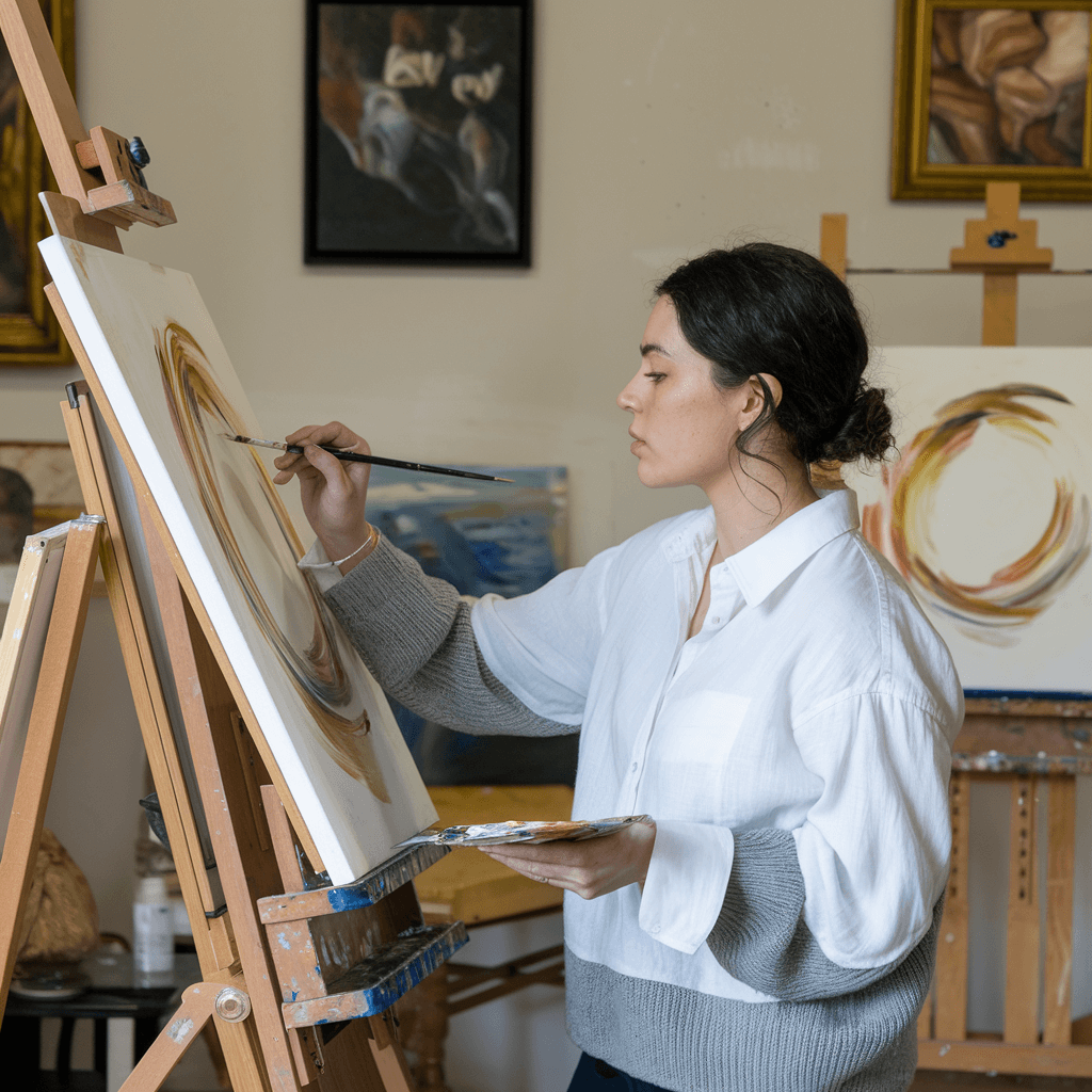 Isabella's work vibrantly celebrates Italian landscapes, using a palette knife impasto style to capture the rolling hills and sun-drenched coasts. Her textured canvases evoke warmth and nostalgia.