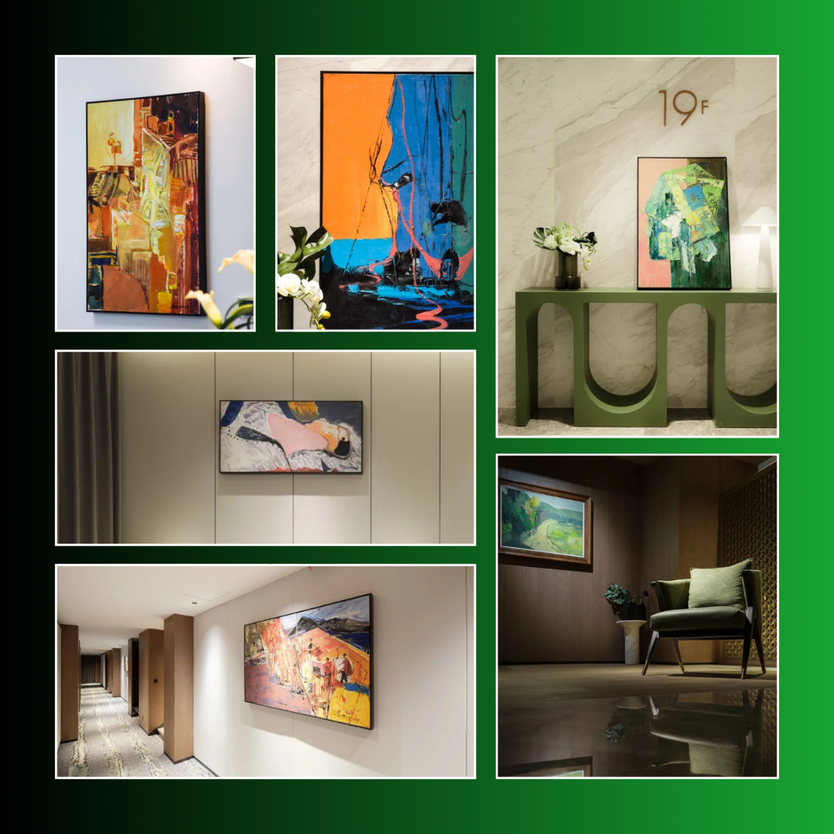 The curated art selection at Greenman Hotel elevates the guest experience, transforming spaces into inspiring havens. From the soothing abstract piece in the lobby to the vibrant, textured works in the guest rooms and hallways, each painting adds a unique touch of personality and sophistication. The art creates a welcoming atmosphere, sparking conversation and enriching the overall stay, making Greenman Hotel more than just a place to sleep, but a destination to experience.