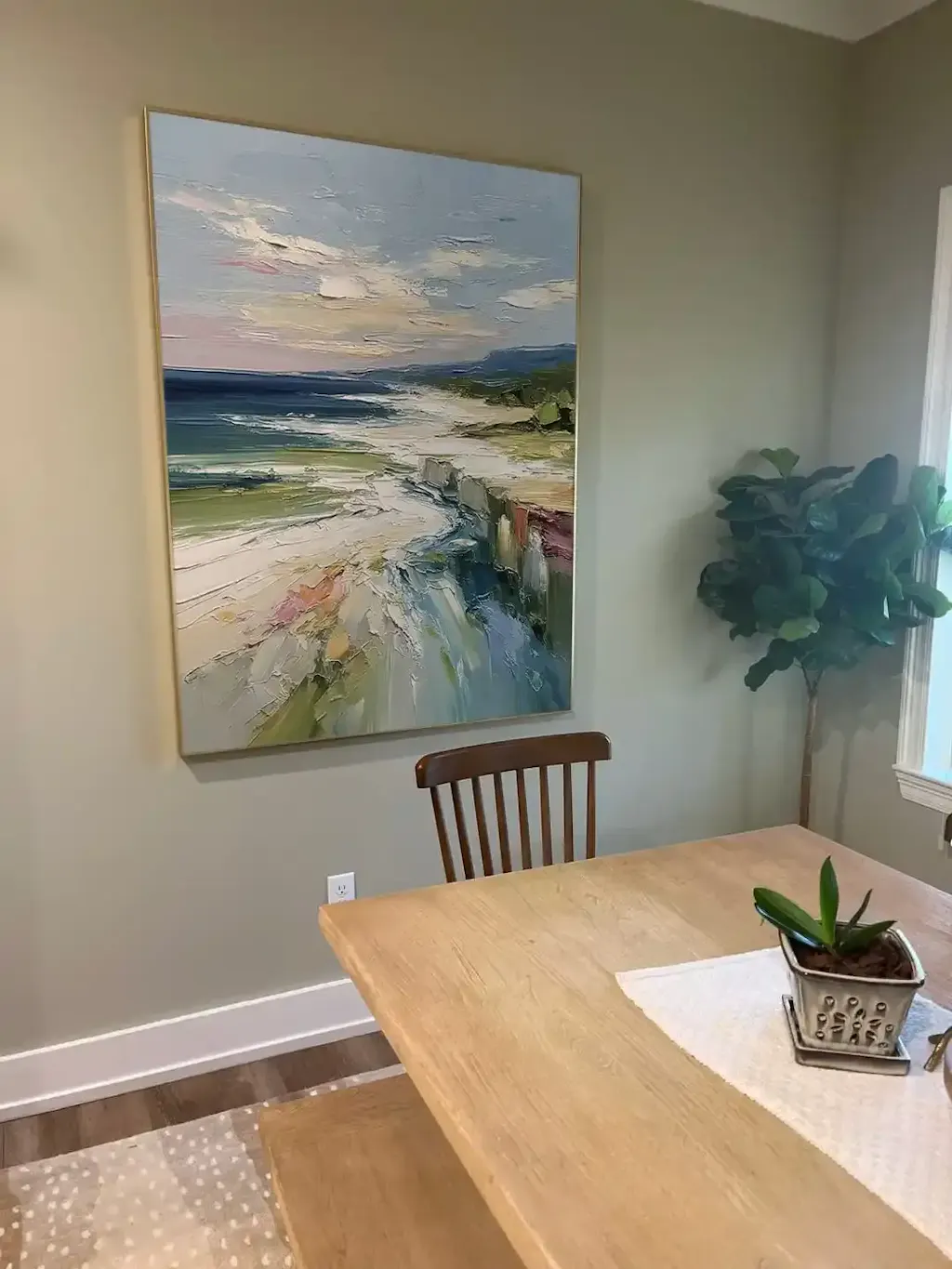 I love this textured painting, the colors are beautiful. You all were very easy to work with, and appreciated the review process before completing the painting - very professional. You even included nails/hooks to hang the picture which was a nice touch. Thank you!