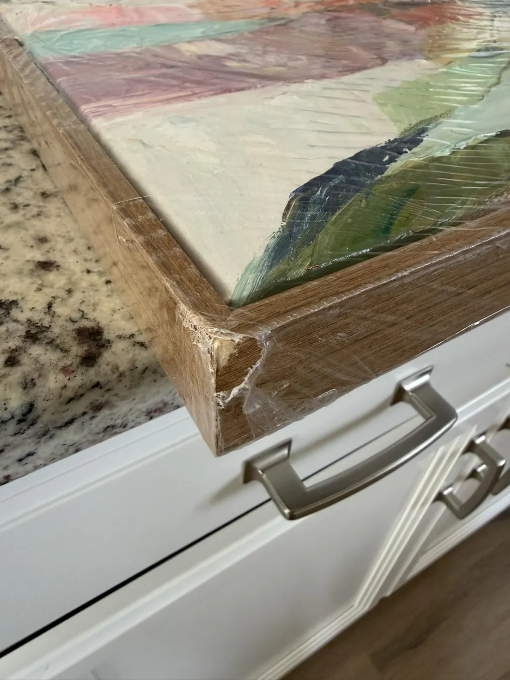 The painting is beautiful but the wood frame came damaged. The corners of the frame were not protected for shipping.