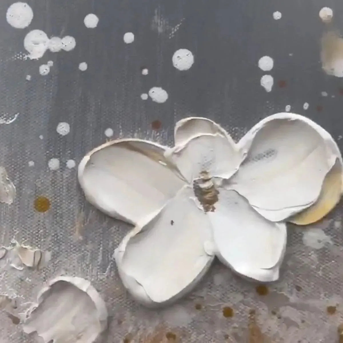 GOLDEN DRIFT: White and Gold Floral Abstract Painting for Living Room