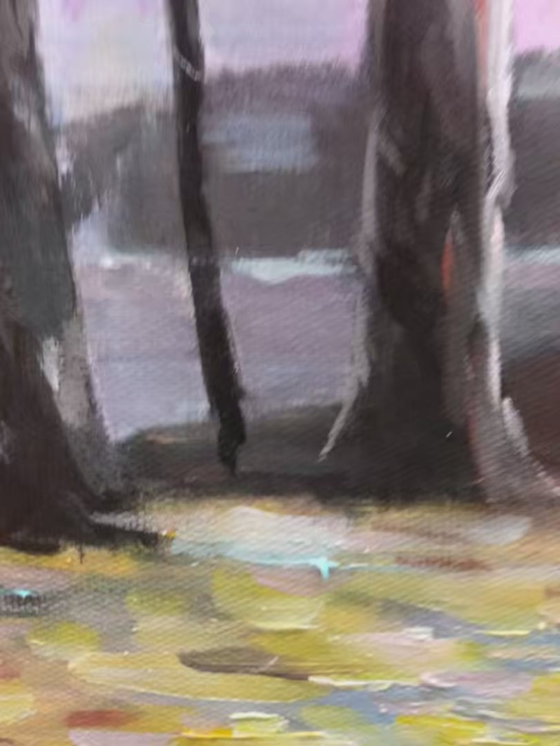 "Autumn Serenade" is an original oil painting that captures the serene beauty of an autumnal landscape. The warm golden hues of the trees reflect in the still waters of the lake, creating a captivating visual experience. This horizontal piece is a perfect addition to any living room, bedroom, or meditation space, adding a touch of tranquil elegance and natural beauty to your décor.