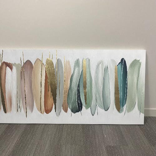 Cute painting I got for a rental. I was a little nervous about it but I think adds a lot to the space. It was easy to install and felt like good quality for what I got. It didn’t feel to heavy and the supplies to hang it felt sufficient.