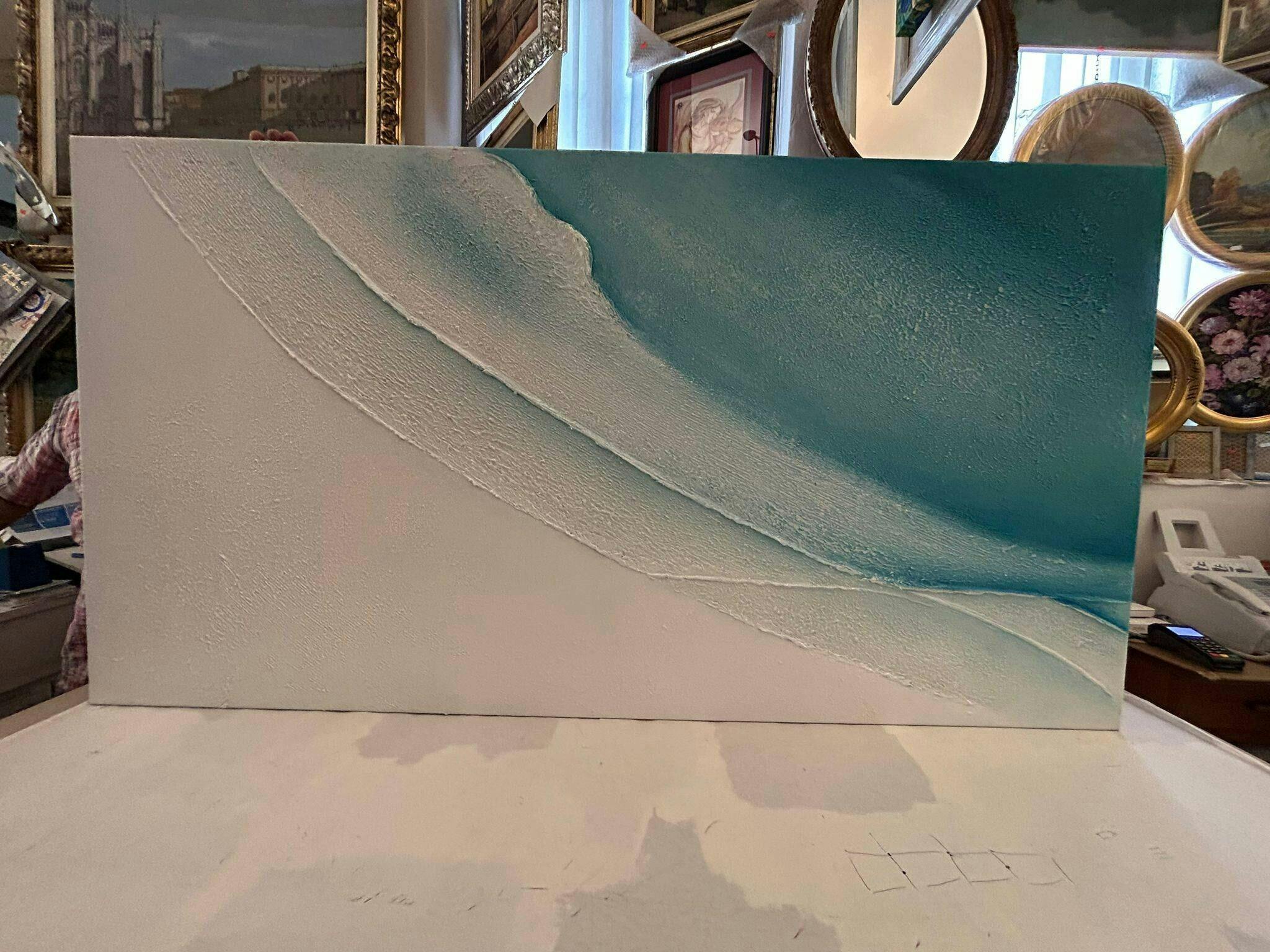 AZURE SHORES: Textured Abstract Beach Painting in Blue and White