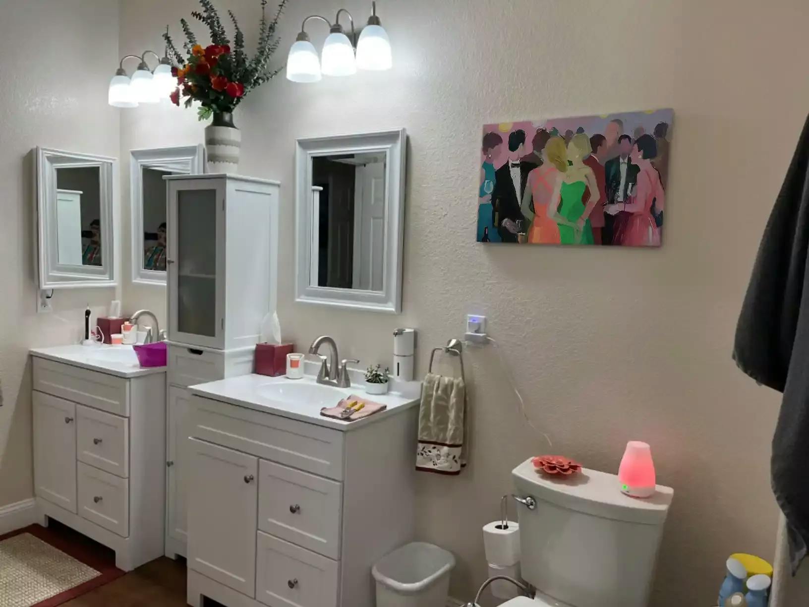 Cute painting I got for a rental. I was a little nervous about it but I think adds a lot to the space. It was easy to install and felt like good quality for what I got. It didn’t feel to heavy and the supplies to hang it felt sufficient.