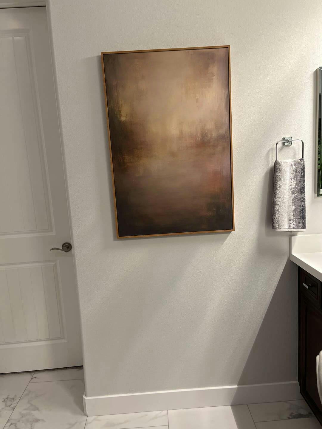 Immerse your space in the quiet warmth of 'Fading Ember.' This piece captures a moment of tranquil contemplation, with deep, earthy browns and subtle golden highlights blending in a harmonious dance of light and shadow. Its minimalist and Wabi Sabi essence invites a sense of calm and grounded sophistication into your home or office. More than just a decoration, it's an atmosphere—a personal sanctuary where you can pause, breathe, and find beauty in serene imperfection. Let this painting transform your wall into a source of daily peace and refined elegance.