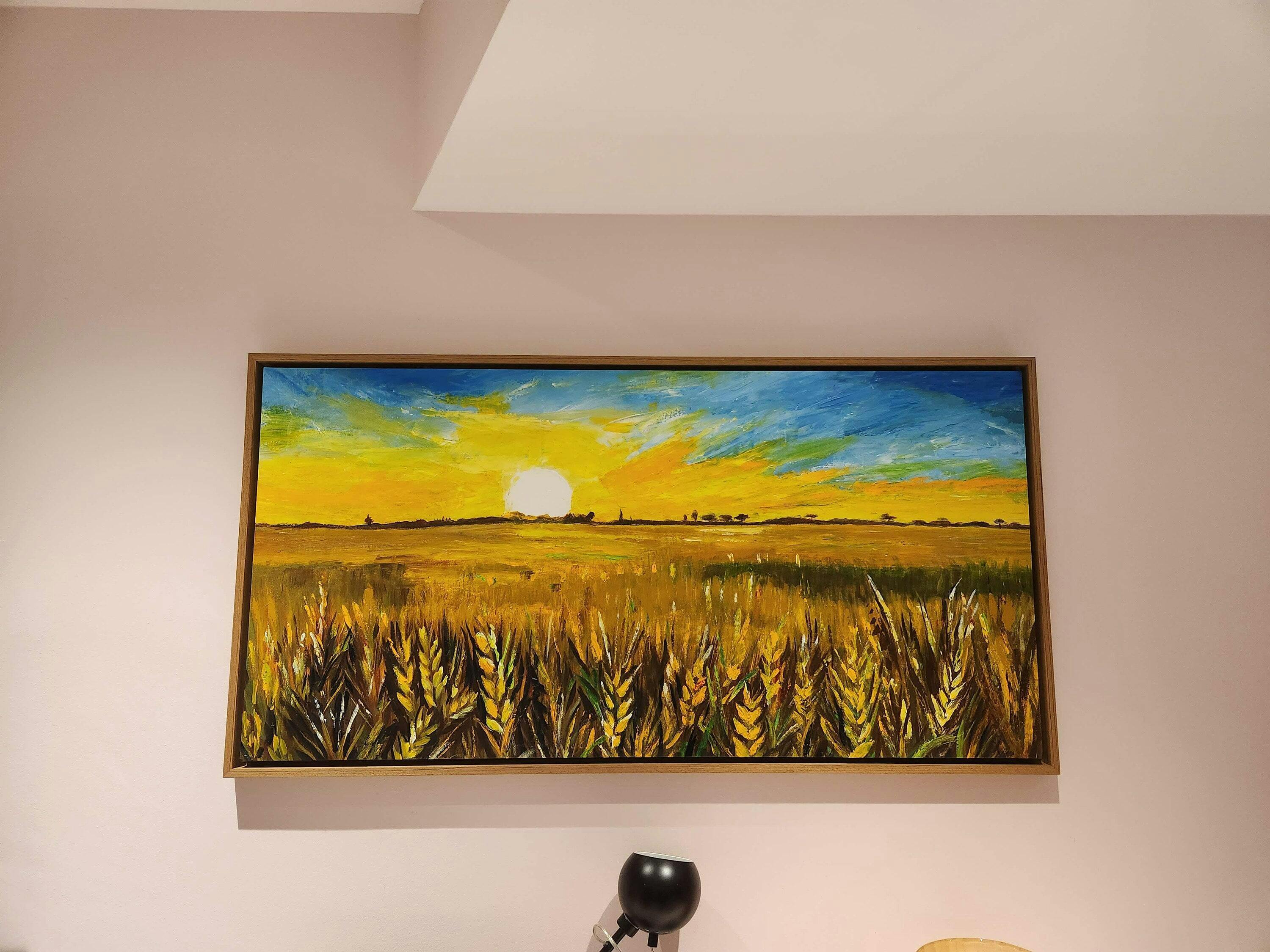 GOLDEN SUNSET FIELD: Landscape Painting of a Wheat Field at Sunset