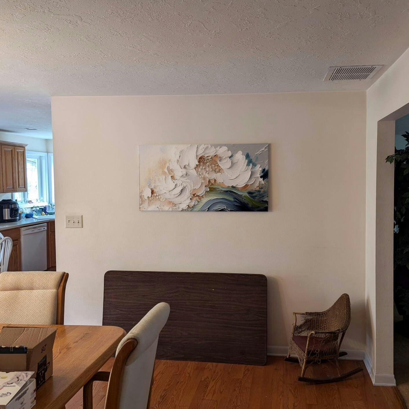 Cute painting I got for a rental. I was a little nervous about it but I think adds a lot to the space. It was easy to install and felt like good quality for what I got. It didn’t feel to heavy and the supplies to hang it felt sufficient.