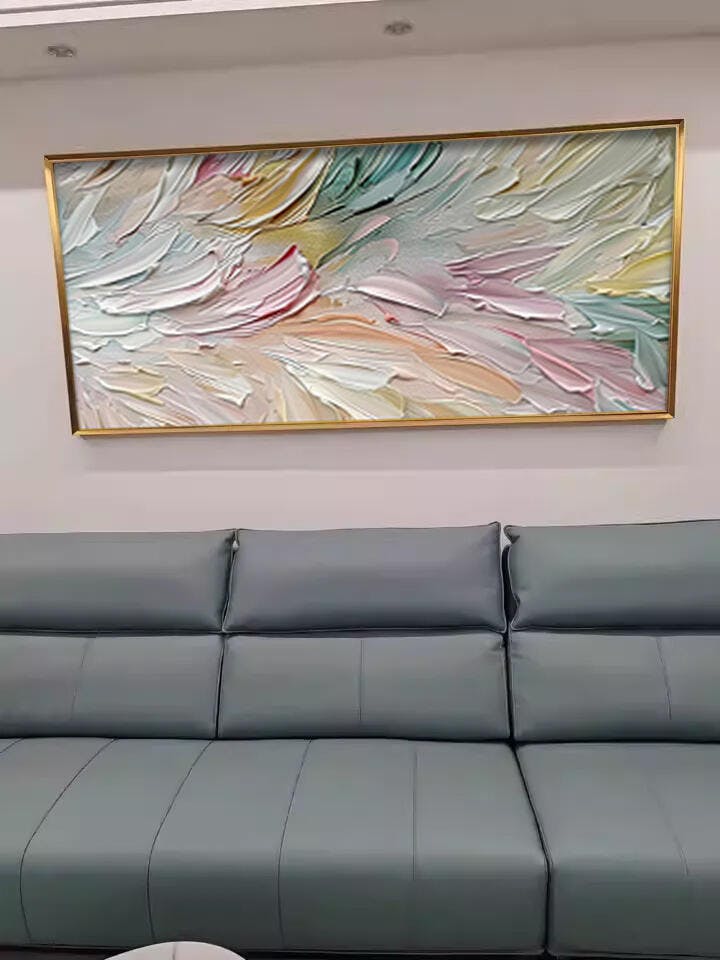PASTEL DREAM: Textured Abstract Painting in Soft Hues, Horizontal Wall Art