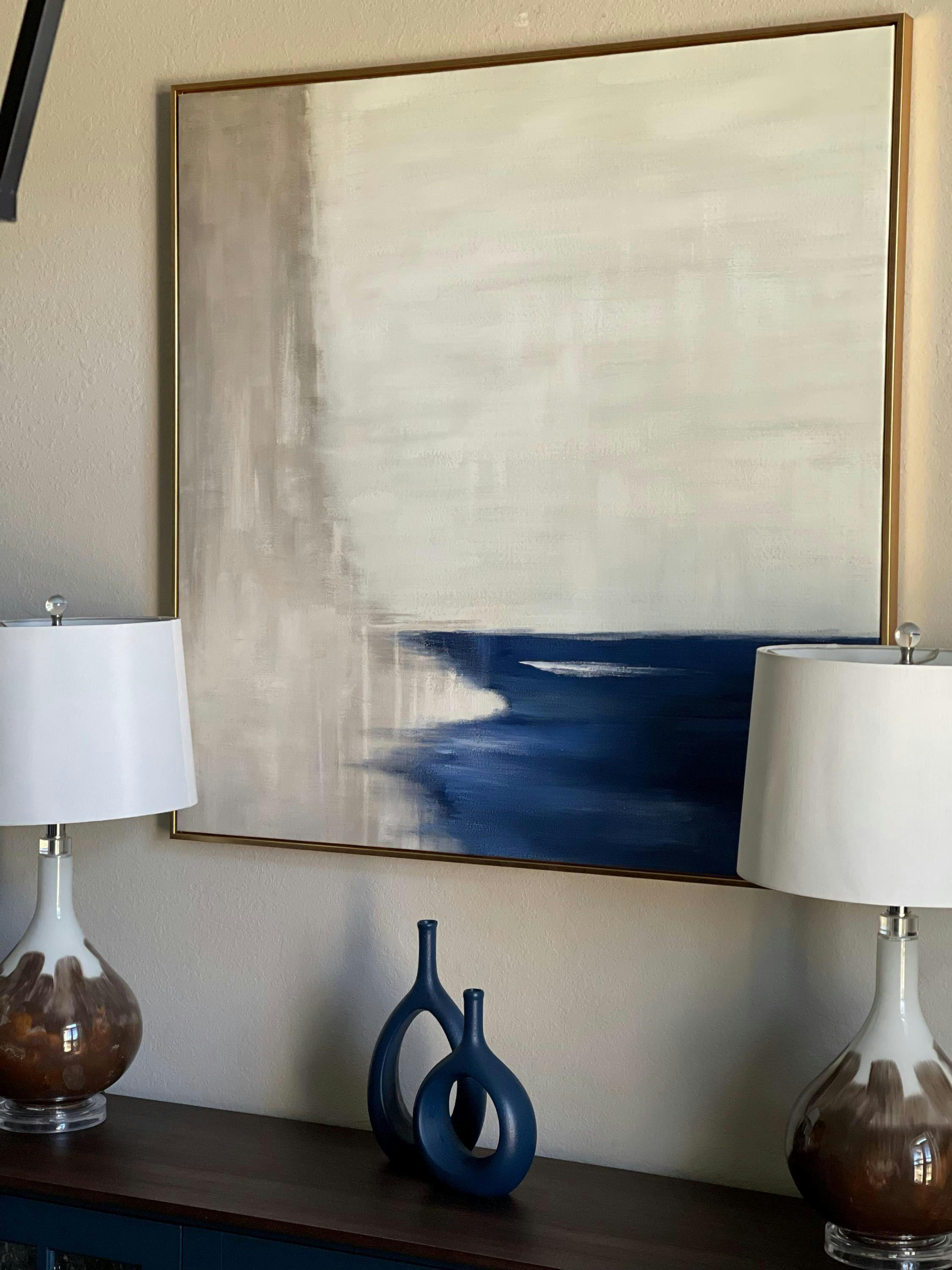 SERENE SHORE: Minimalist Abstract Coastal Painting in Blue and Beige