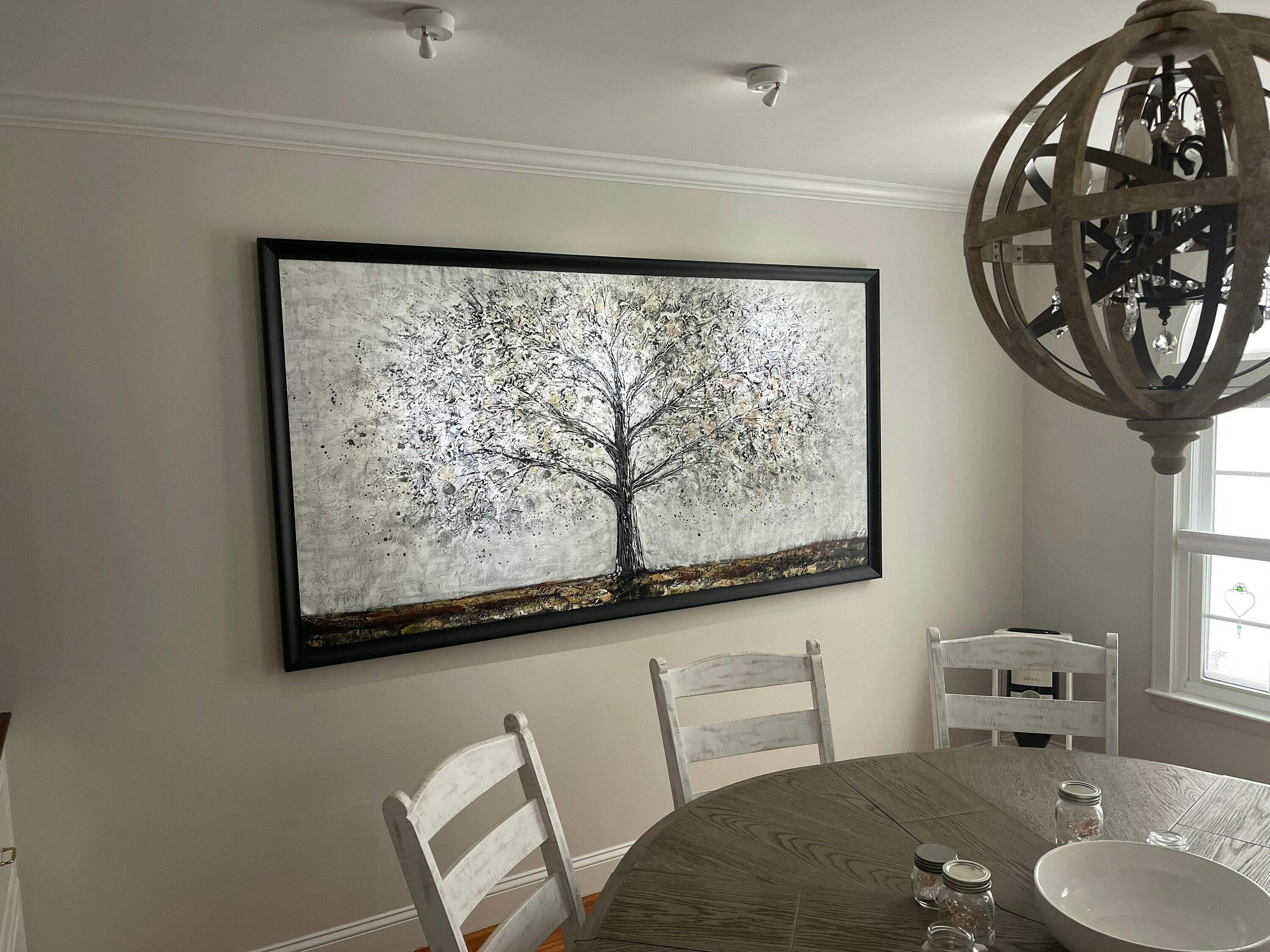 My husband and I wanted something for our dining room that wasn’t something that would go out of style or be the same old same ole home decor. We came across Cheng’s oak tree painting and loved it. I felt like it represented family and also our Mississippi southern roots. We placed our order and received it about a month later. It looks nearly identical to the sample photo but you wouldn’t know the amount of color it has or that he took the time to add texture to it. The trunk of the tree resembles bark with how he texturized it. It’s absolutely beautiful! We also had questions along the way that Cheng gave detailed answers to within just a few hours. He also checked in to make sure we had received it and that there wasn’t any issues. Don’t hesitate to buy this from him! Thank you again Cheng!