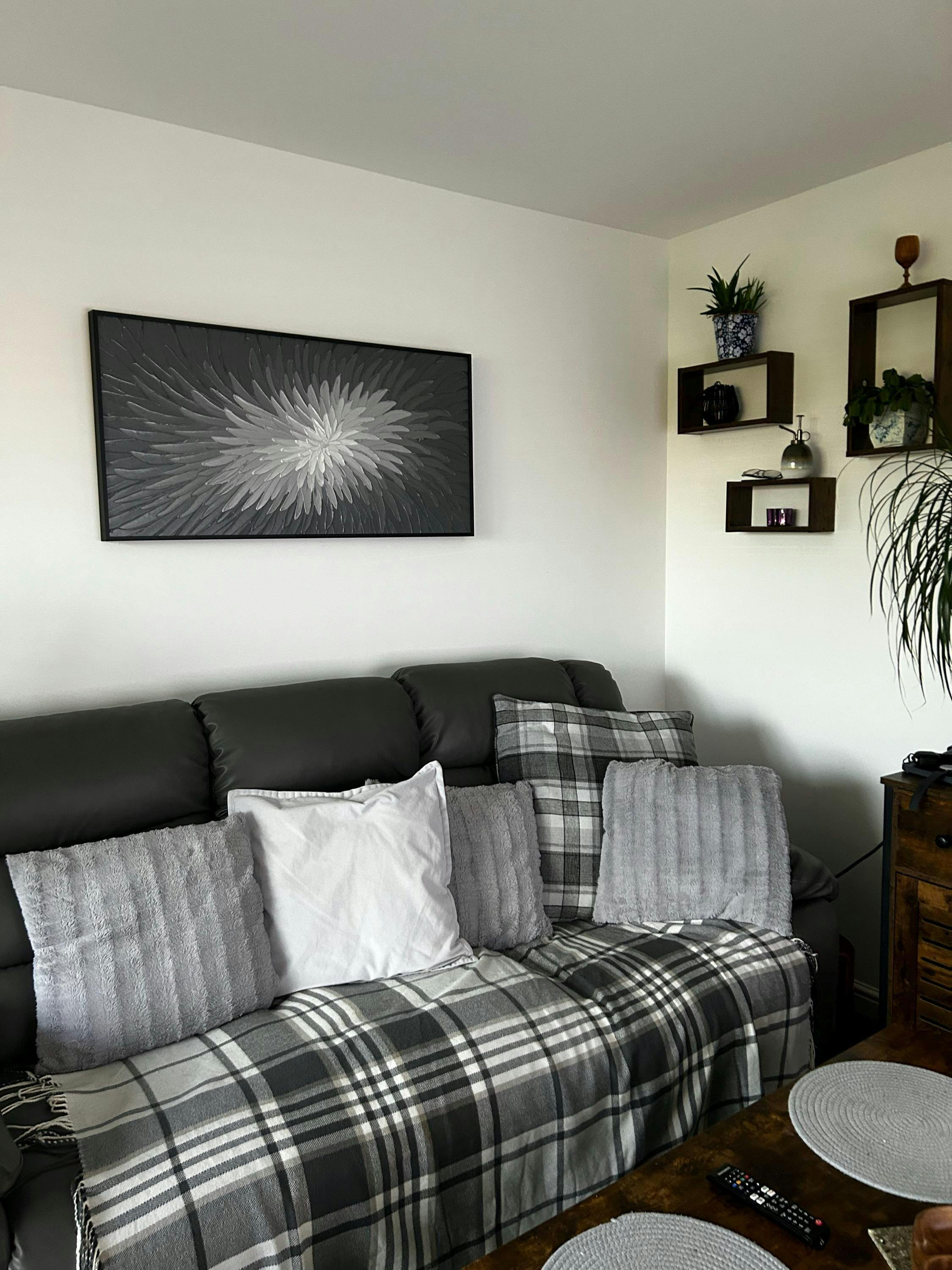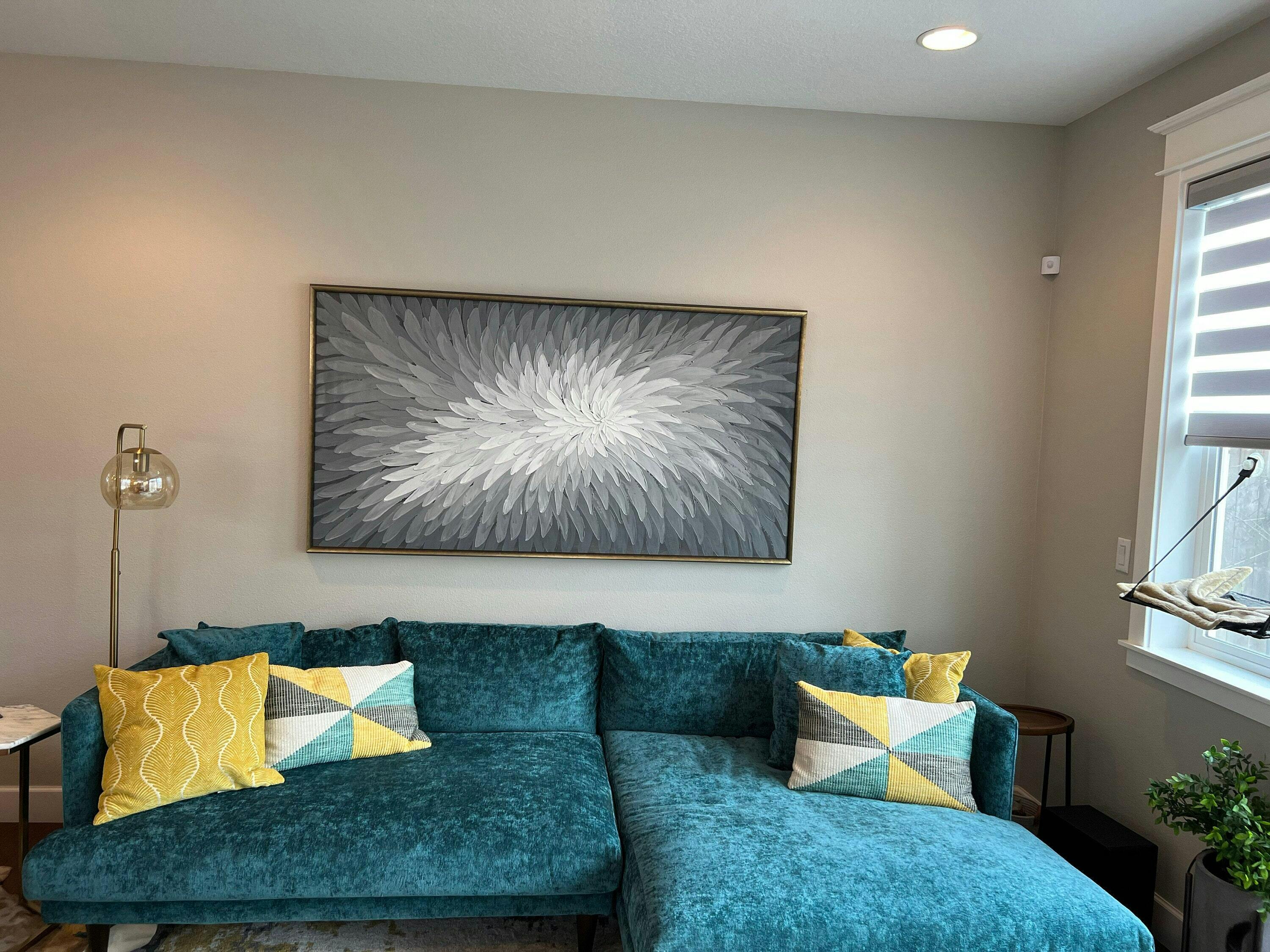 Cute painting I got for a rental. I was a little nervous about it but I think adds a lot to the space. It was easy to install and felt like good quality for what I got. It didn’t feel to heavy and the supplies to hang it felt sufficient.