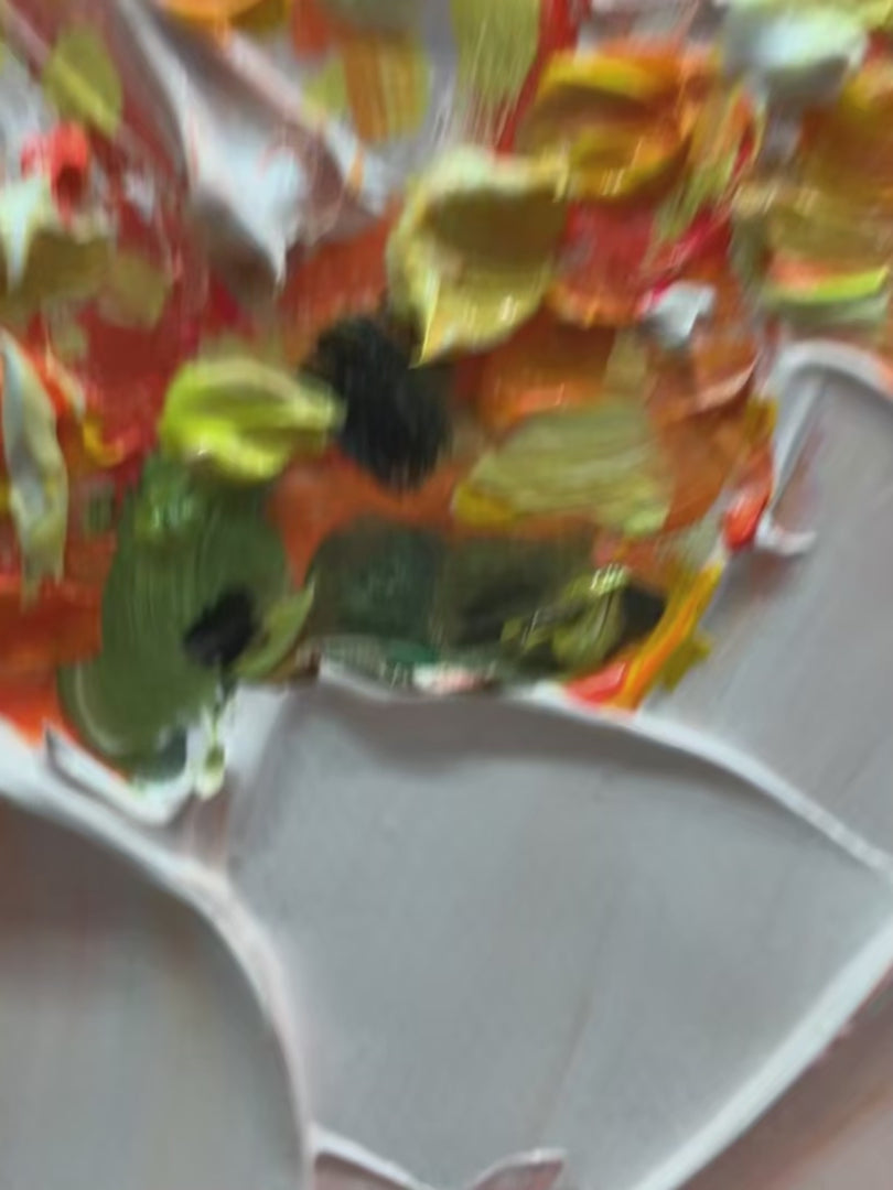 'I am beyond thrilled with my new 'SPRING BOUQUET: Vertical Textured Floral Painting'! It's such a vibrant addition to my dining room. The impasto style really makes the pink and orange flowers pop off the canvas, adding a dynamic and lively feel to the space. The texture is so rich and the colors are just as bold and beautiful in person as they are in the photos. It's not just a decoration; it's a statement piece that brightens up the entire room. I've found myself admiring it every time I walk by, and it's sparked many a conversation with friends and family. It's a true testament to the power of art to transform a space. I couldn't be happier with my purchase!'
