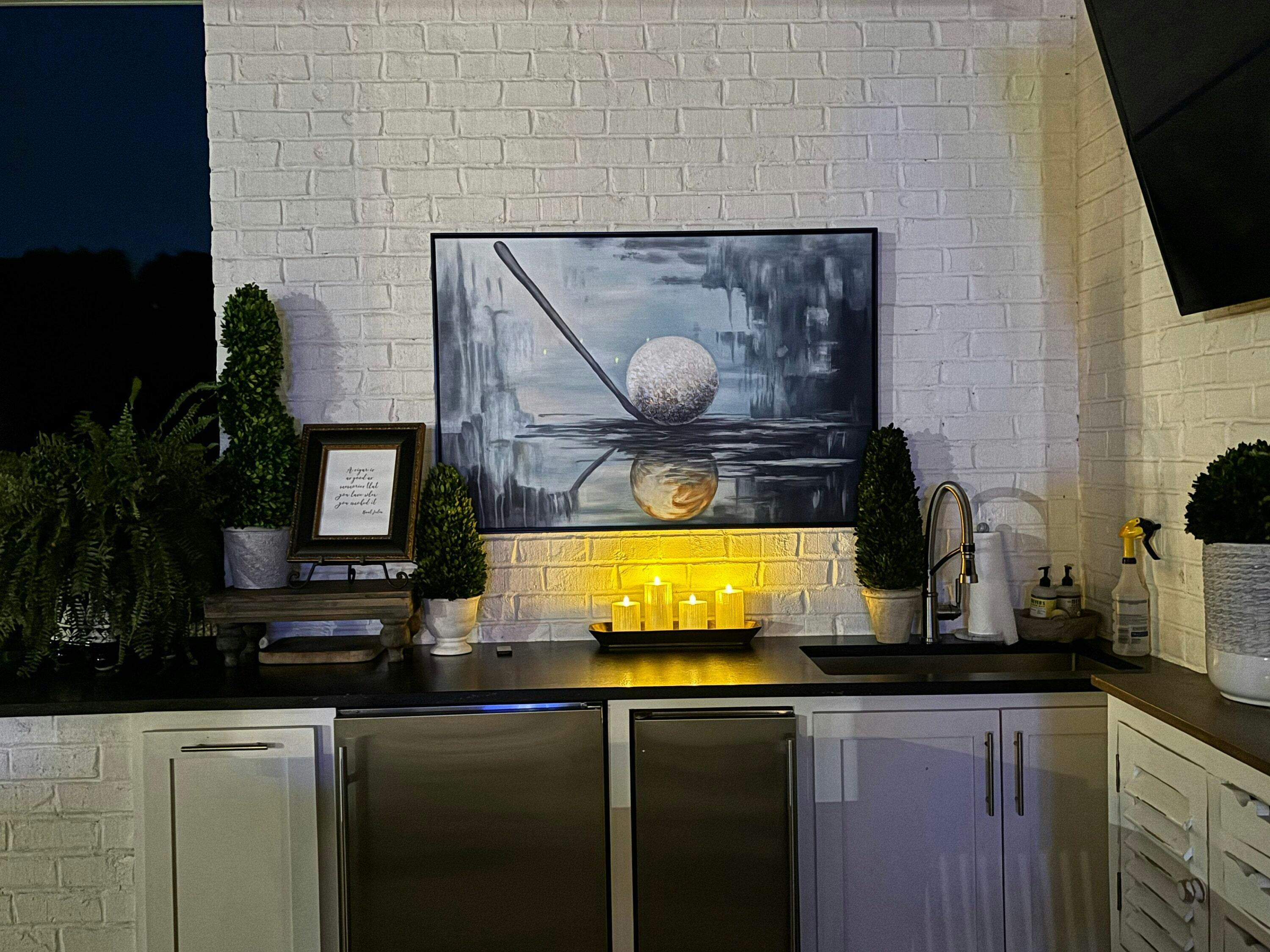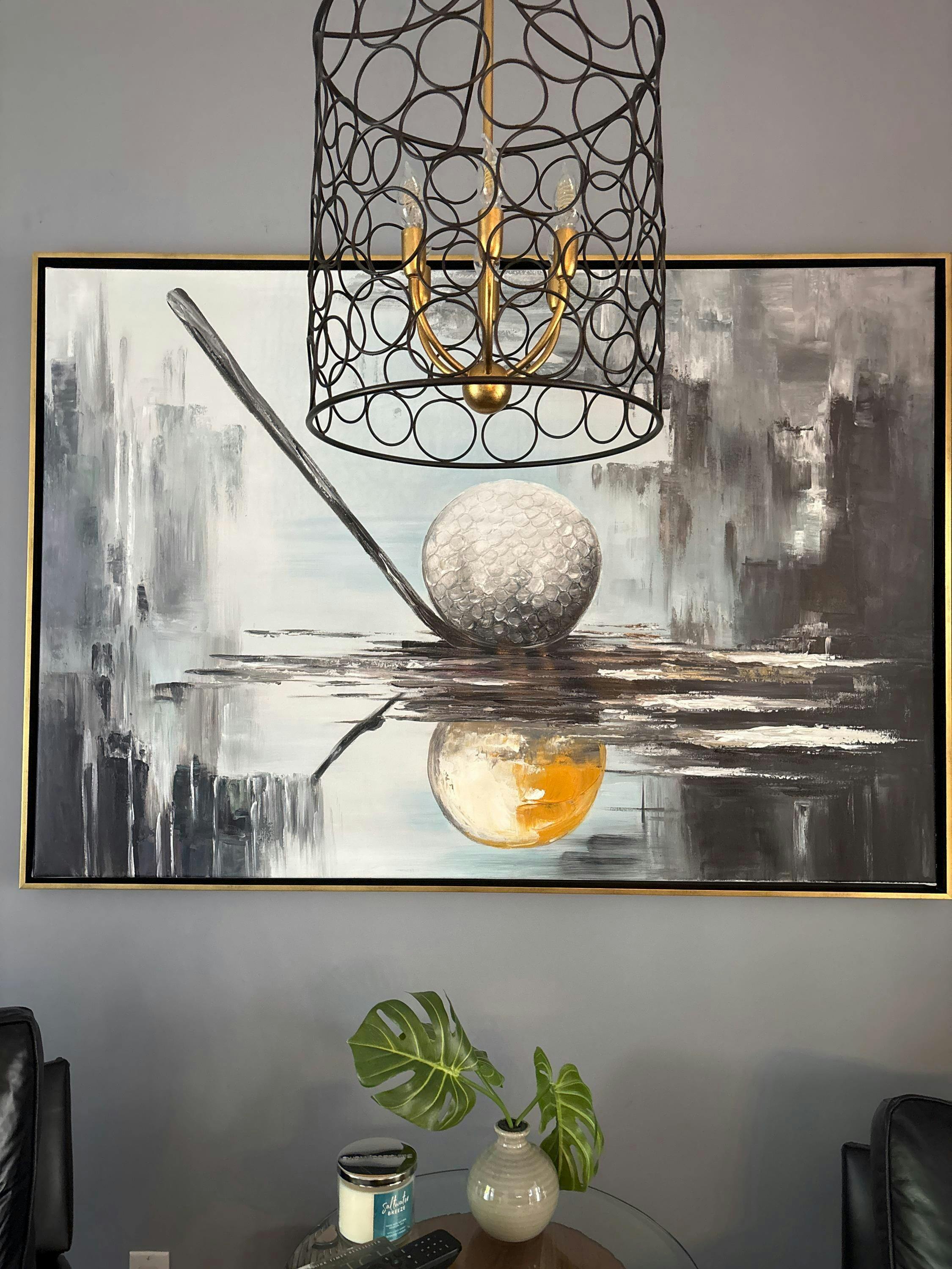 "Stroke of Genius" is an original textured oil painting that captures the quiet intensity and subtle drama of golf. The muted palette and evocative imagery invite viewers to contemplate the focus and precision required of the sport. This piece is a perfect addition to any living room, office, or man cave.