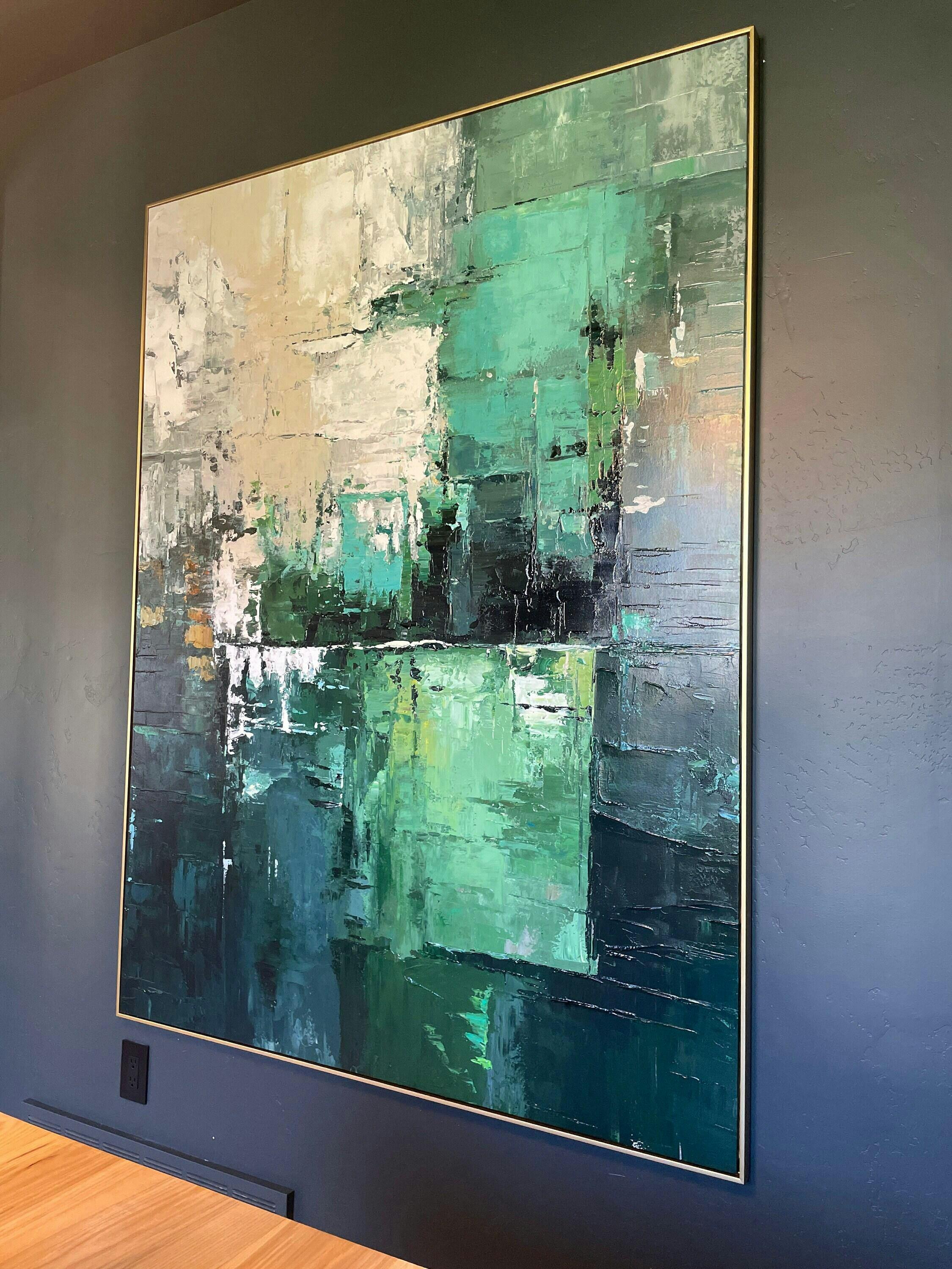 TEXTURED GREEN ABSTRACT: Impasto Abstract Painting, Vertical Wall Art