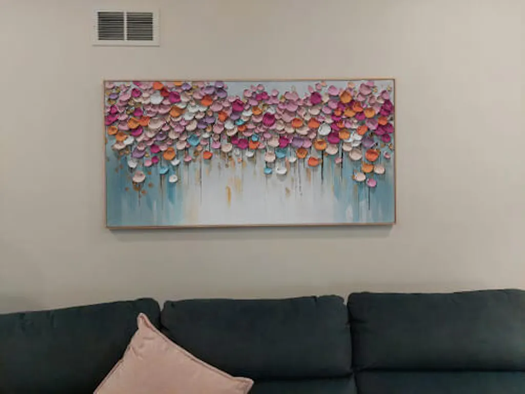 I love this textured painting, the colors are beautiful. You all were very easy to work with, and appreciated the review process before completing the painting - very professional. You even included nails/hooks to hang the picture which was a nice touch. Thank you!