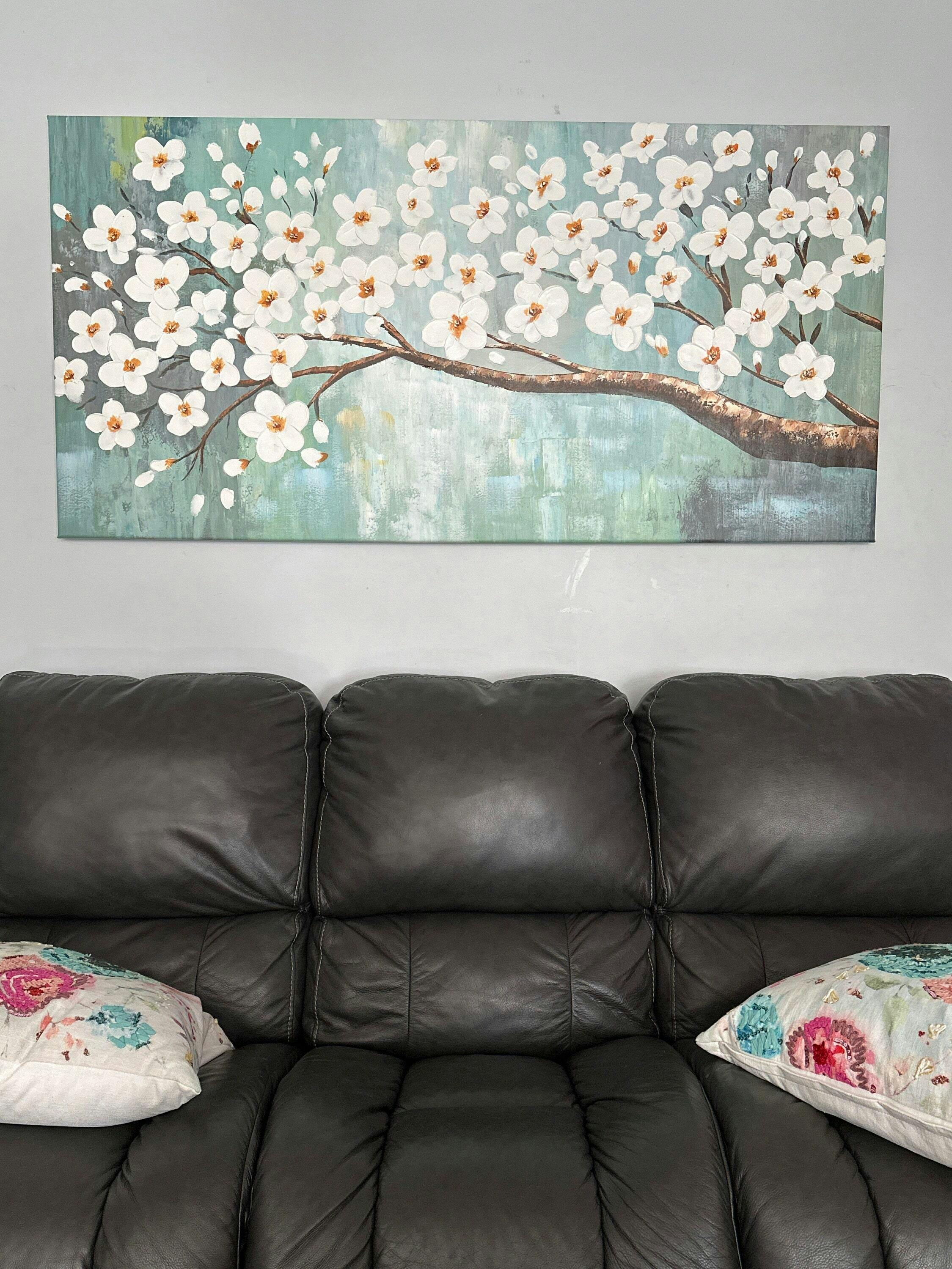 Cute painting I got for a rental. I was a little nervous about it but I think adds a lot to the space. It was easy to install and felt like good quality for what I got. It didn’t feel to heavy and the supplies to hang it felt sufficient.