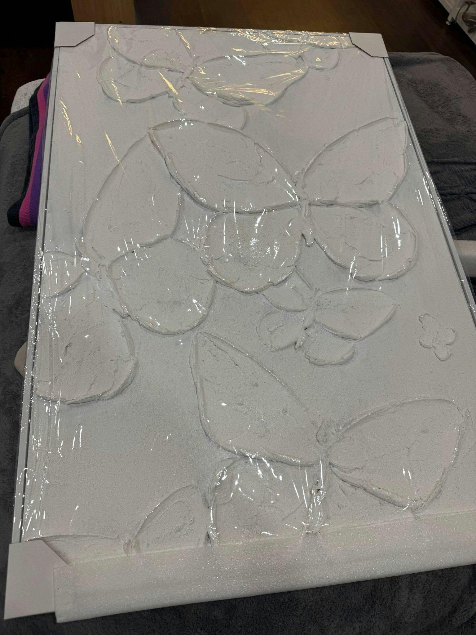 WHITE BUTTERFLIES: 3D Butterfly Impasto Painting, Vertical Wall Art